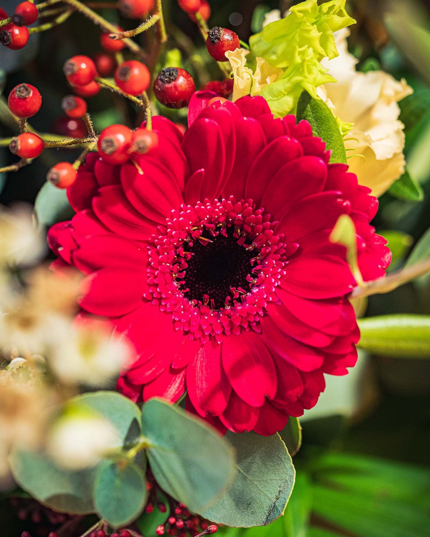 Der perfekte Strauß für jeden, der die Weihnachtszeit liebt. Mit diesem Strauß kannst du deinen Lieblingsmenschen glücklich machen oder dir selbst etwas Schönes gönnen. Die klassischen Rottöne strahlen durch die Kombi mit den helleren Schnittblumen perfekt.
